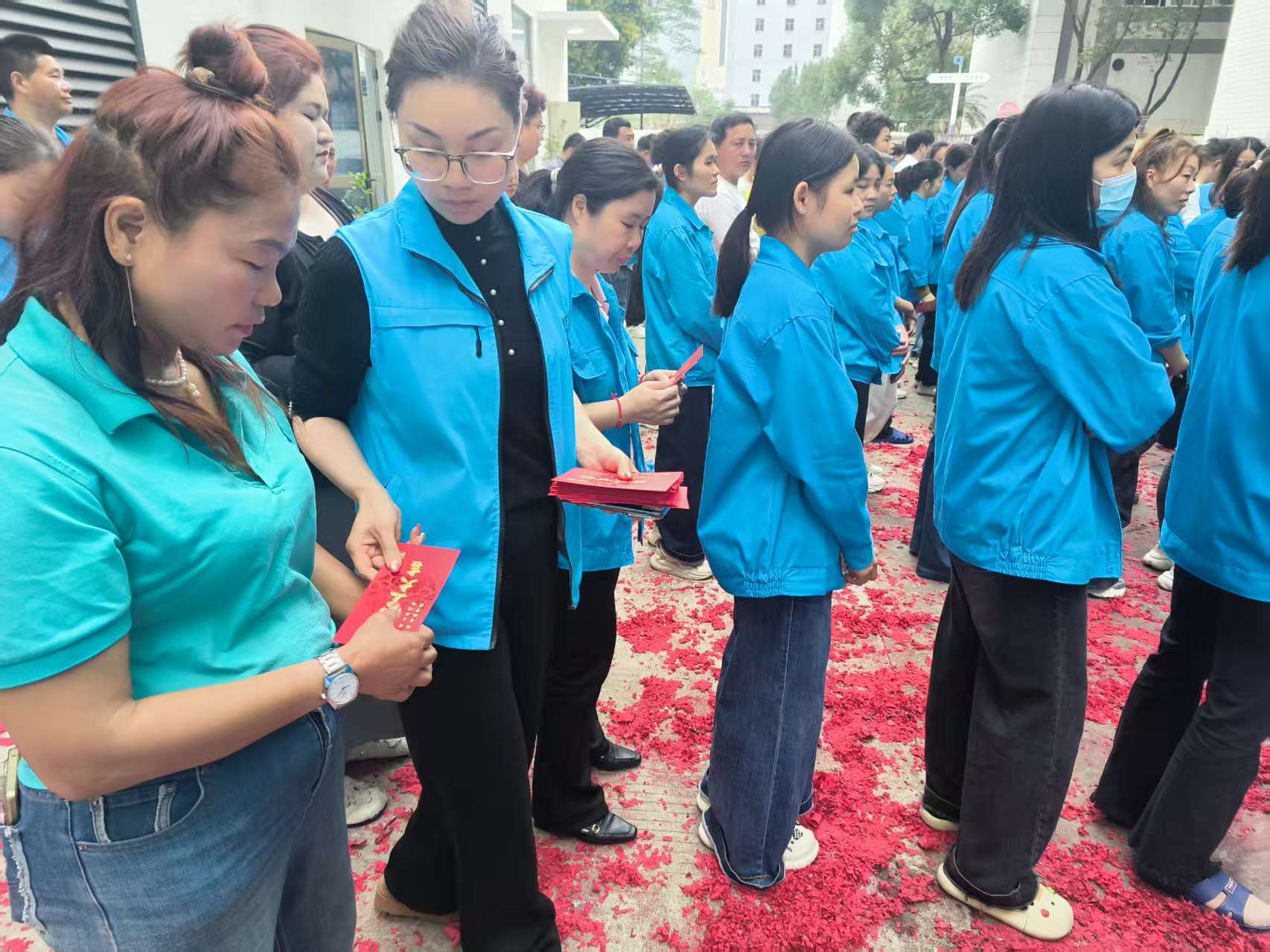 致辞结束后,最受期待的开工红包环节正式开启。公司领导们亲手将一个个寓意吉祥的红色送到员工手中,传递着新春的祝福与关怀。